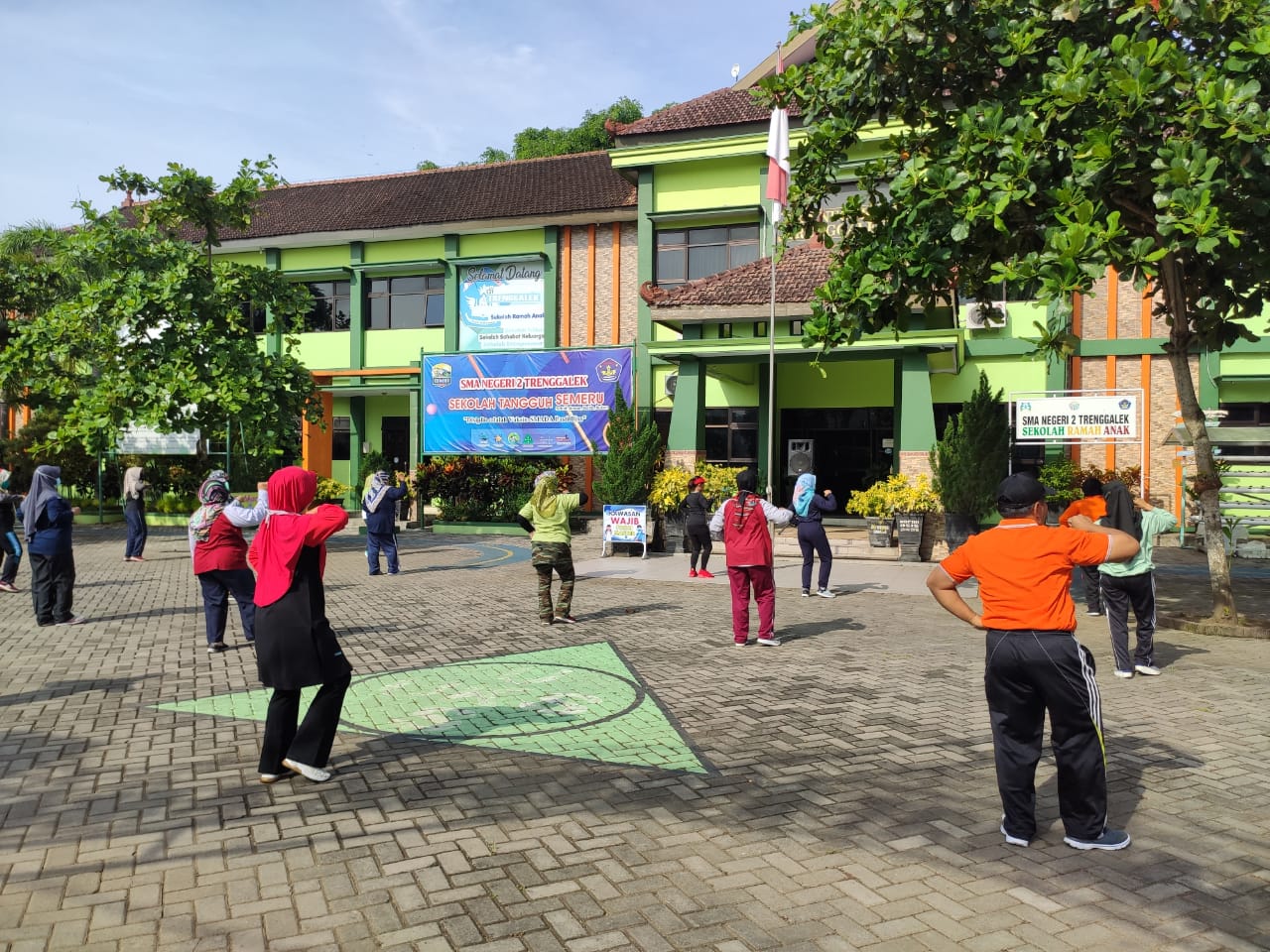 Kegiatan olahraga pagi ini dilaksanakan setiap hari Jumat. Mengingat saat ini berada dalam masa pandemi, maka dalam kegiatan ini diterapkan protokol kesehatan sesuai dengan aturan yang telah ditetapkan oleh pemerintah. Jumlah pesertanyapun juga hanya 50% dari jumlah guru dan staf yang ada di sekolah.