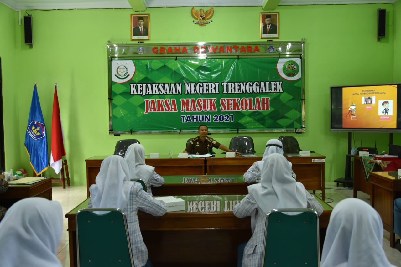 Usai sambutan yang diberikan oleh bapak Kepala Sekolah, dilanjutkan dengan sambutan Ibu Darfiah, SH., MH., sekaligus membuka acara Jaksa Masuk Sekolah tahun 2021. Dalam sambutannya Ibu Kepala Kejaksaan Negeri Trenggalek menyampaikan perasaan sangat senang bisa masuk dan bertemu dengan keluarga besar SMA Negeri 2 Trenggalek. Banyak motivasi yang diberikan kepada siswa, termasuk bercerita saat masa indah di SMA.